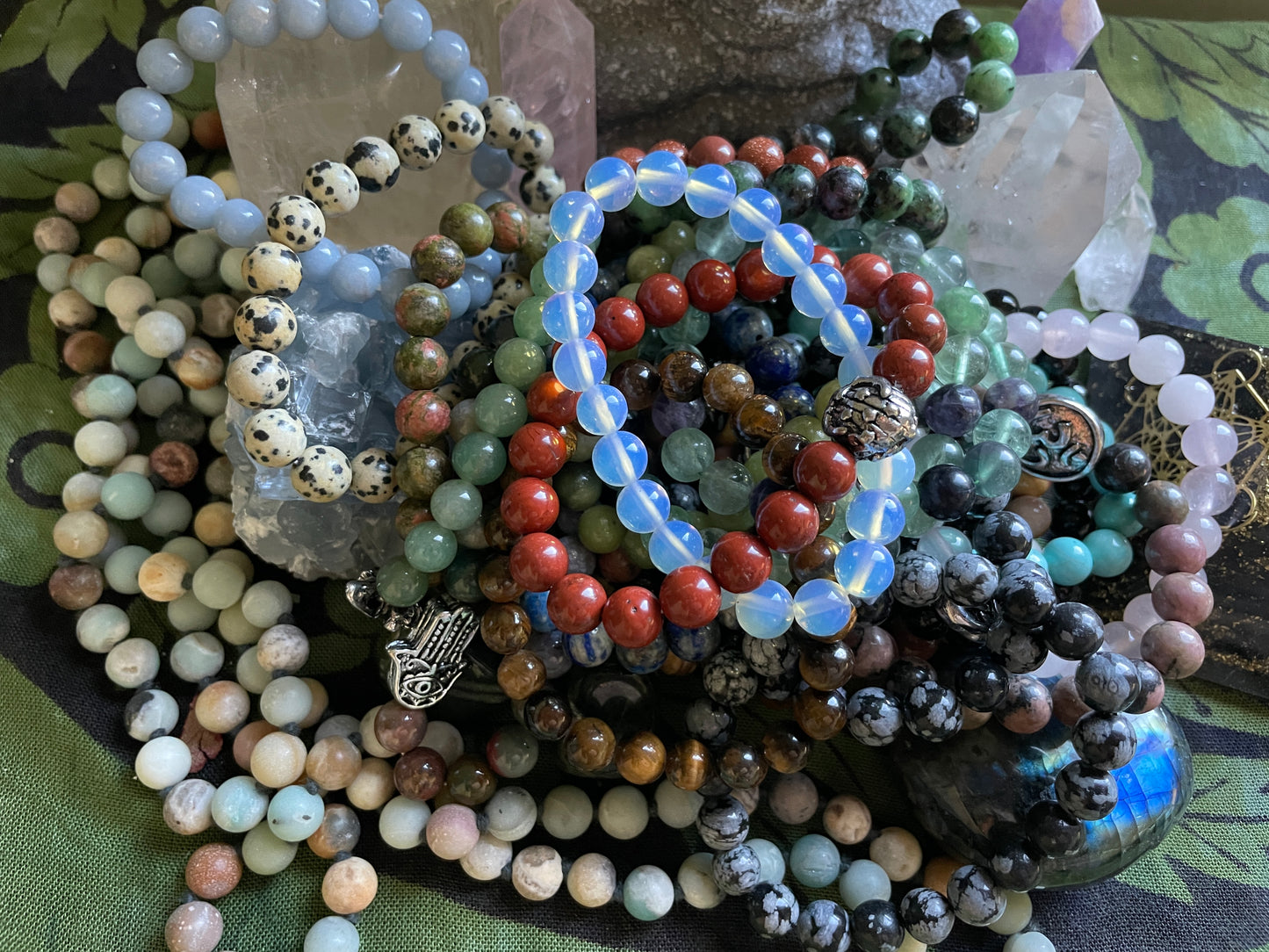 These are elastic gemstone bracelets so therefore these are somewhat adjustable. 8 mm round beads. Each bracelet comes ***cleared and charged by a Reiki Master with intention***
