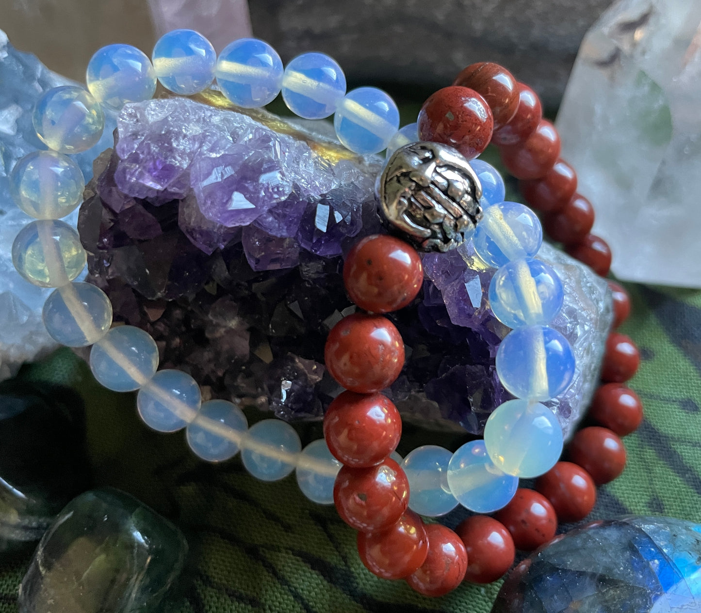 Red Jasper- focus, strength, grounding, associated with the root chakra, nurtures, sense of well-being