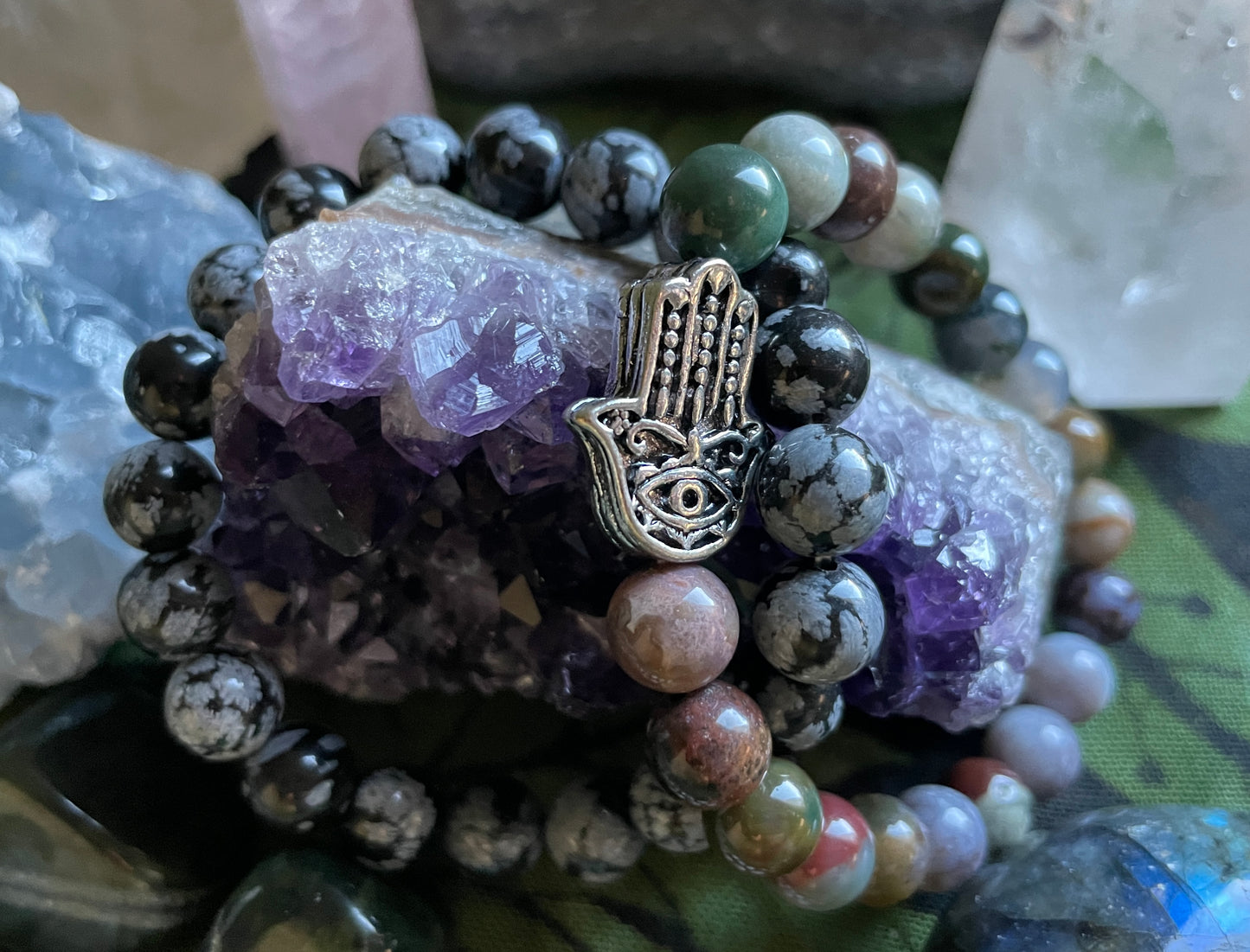 Snowflake Obsidian- balances, purifies, ground body and aura, focus