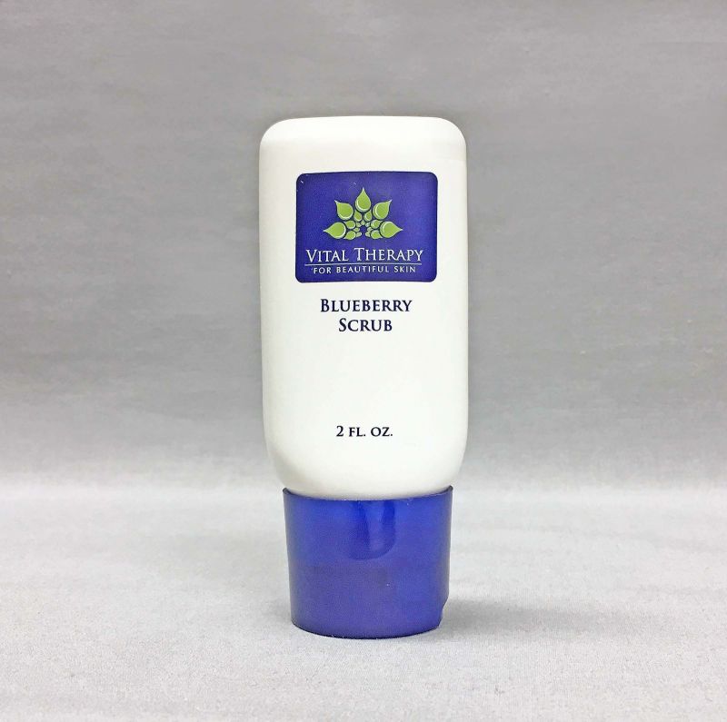 For normal and acneic skin types, Vital Therapy Blueberry exfoliating scrub contains jojoba beads to lightly scrub the skin's surface. Contains alpha and beta hydroxy acids. 2 oz.